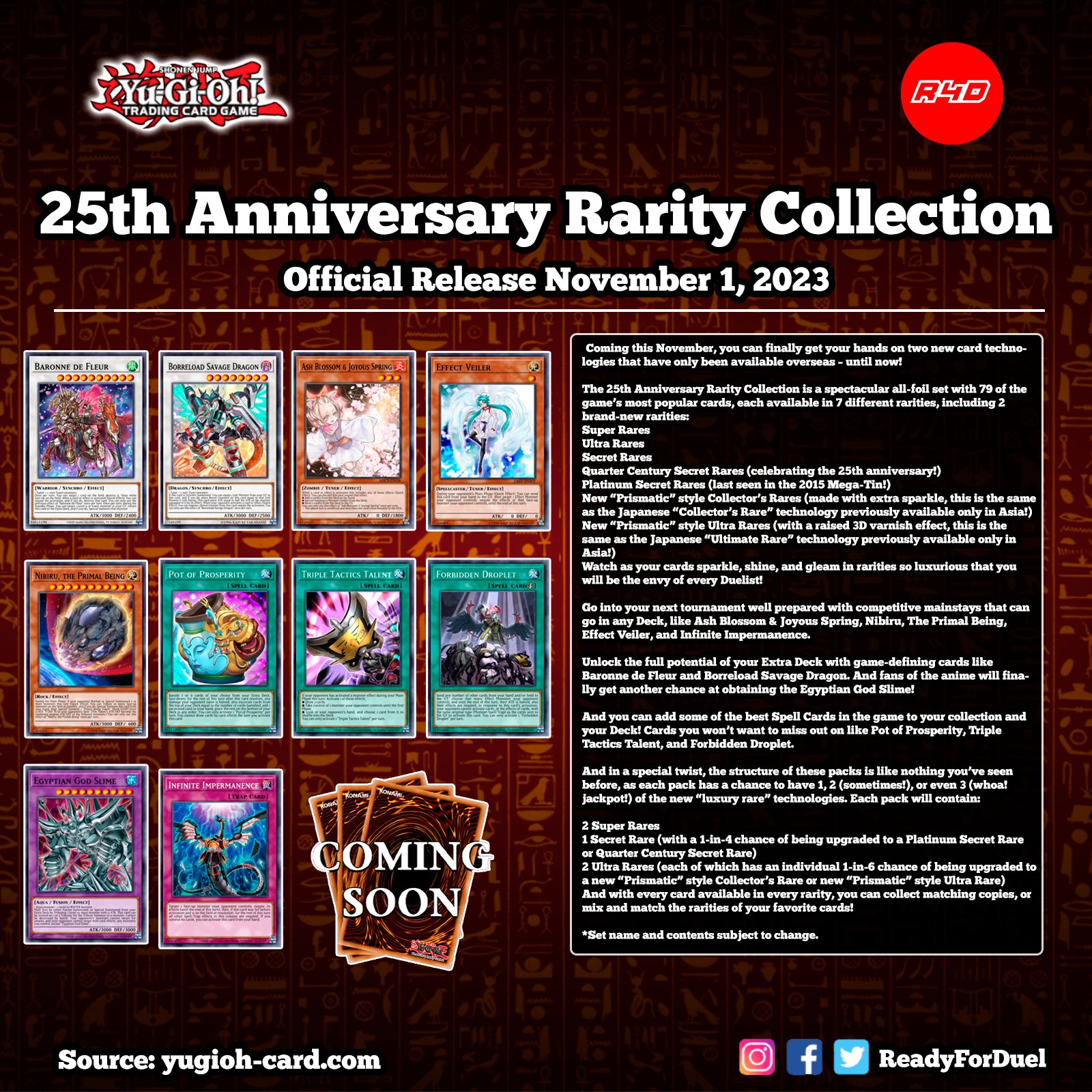 Webjul 3, 2023 · what rarities are in the 25th anniversary rarity collection? There's an exciting blend of returning and new rarities available in the 25th anniversary rarity. Inside, you can find all new sparkly cards to get your. Webmay 22, 2023 · the hallmark of the event was the exclusive 20 th secret rare card rarity, which appeared in more than two dozen ocg products over the course of just over two years. Webnov 2, 2023 · there are no wrong answers here: Just stunning cards that are going to stand the test of time, all printed in seven different rarities; From the humble super rare all the way up to platinum secrets, prismatic ultimates, prismatic collector's rares, and the. Weboct 31, 2023 · from november 3rd, 2023 onward, the 25th anniversary rarity will be legal. Tcg collection was very expected by players, once it. Webnov 4, 2023 · john wilkin. “the quarter century secret rare’s my favorite. Secret rares have long been held as one of the most visually appealing rarities. The lettering on the name is silver and the holographic art, lettering and. Webjun 21, 2023 · 25th anniversary rarity collection. This collection is being praised online for its sheer rarity variety. There will be 7 different rarities available, including 2 brand.
